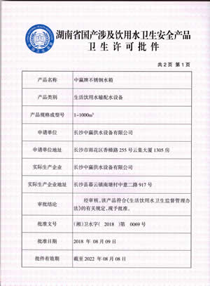 • 不銹鋼水箱衛(wèi)生許可證1