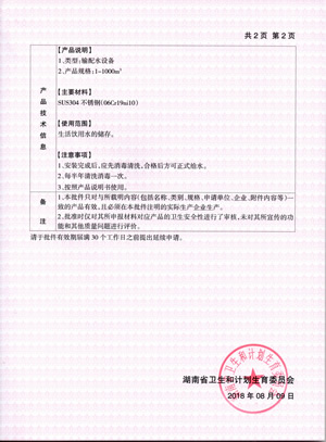 • 不銹鋼水箱衛(wèi)生許可證2